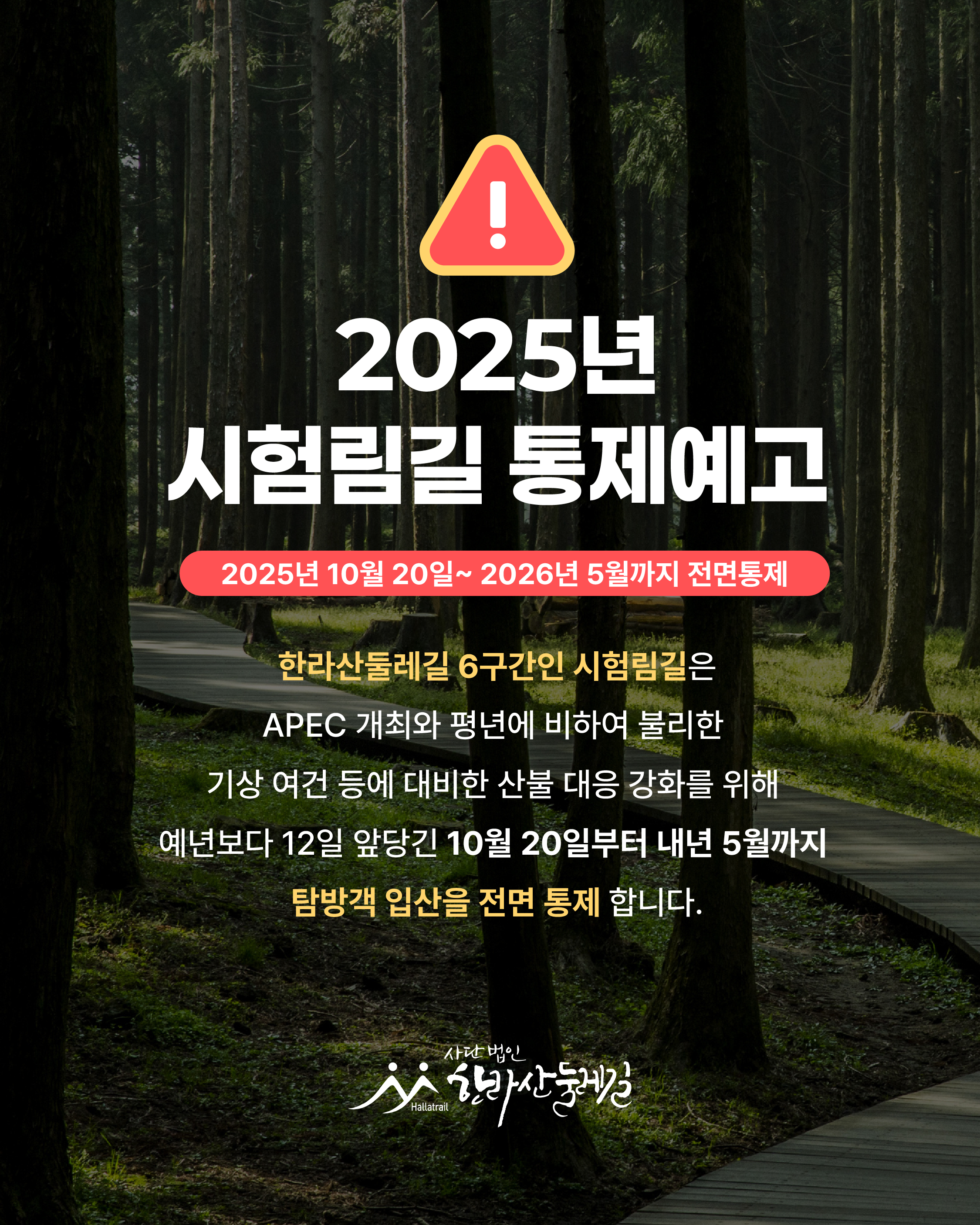 한라산 둘레길은 산림청의 지원으로 관리, 운영되고 있습니다.